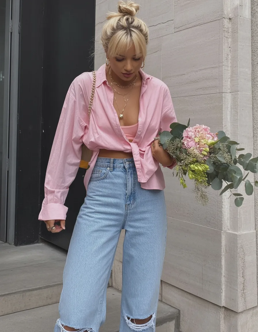 This hairstyle has personality written all over it. The textured updo feels playful and confident, while the soft bangs bring a gentle, youthful balance to the look. It’s the kind of style that makes you feel put together but not overly polished — perfect for spring days that feel a little unpredictable or Chilly. There’s a relaxed charm here that feels inviting and expressive.