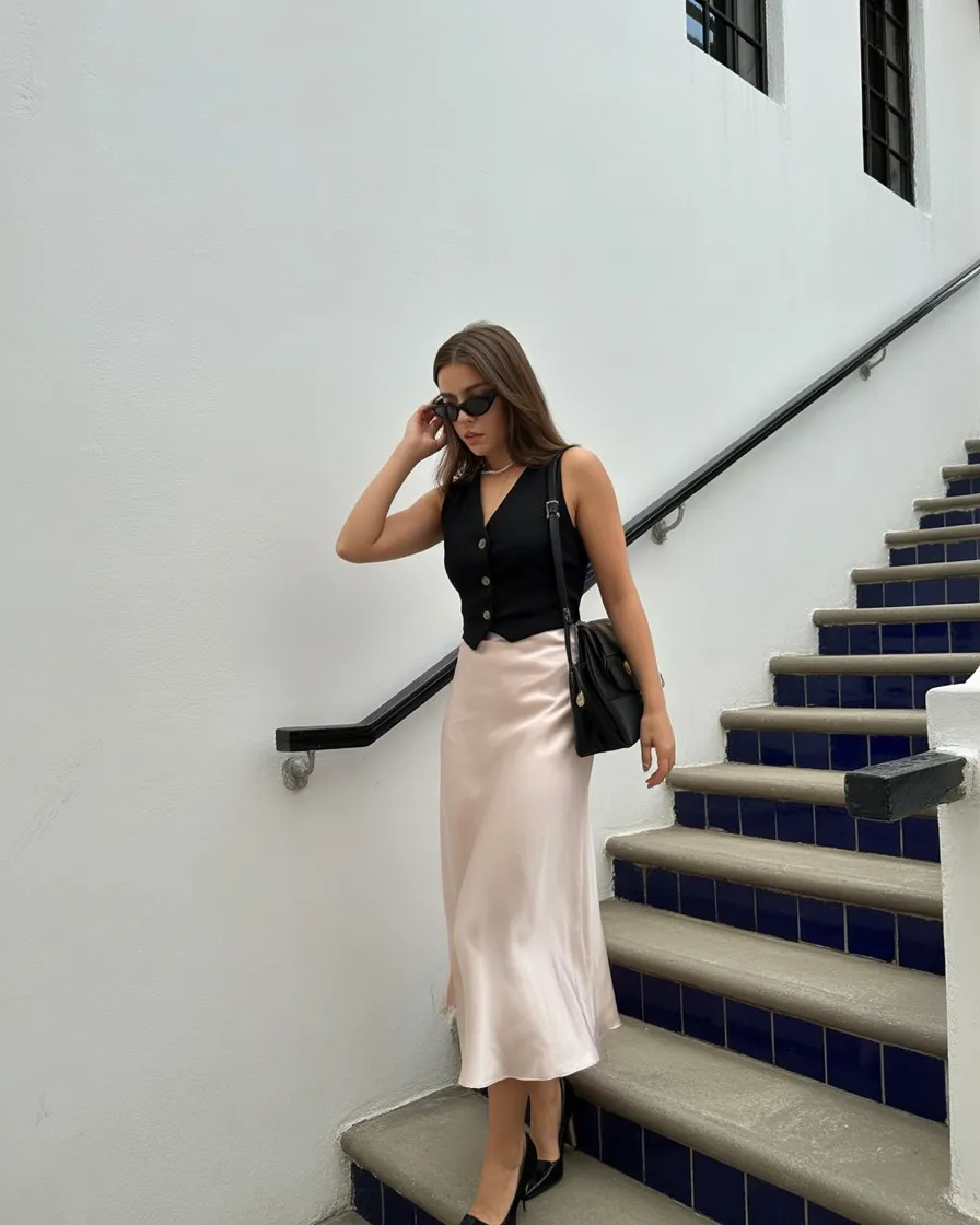 This look has a quiet sophistication that feels effortless and timeless. The subtle layers add movement without taking away from the length, creating a graceful silhouette that feels calm and confident. It carries a refined, black women classy energy — elegant, composed, and deeply flattering.