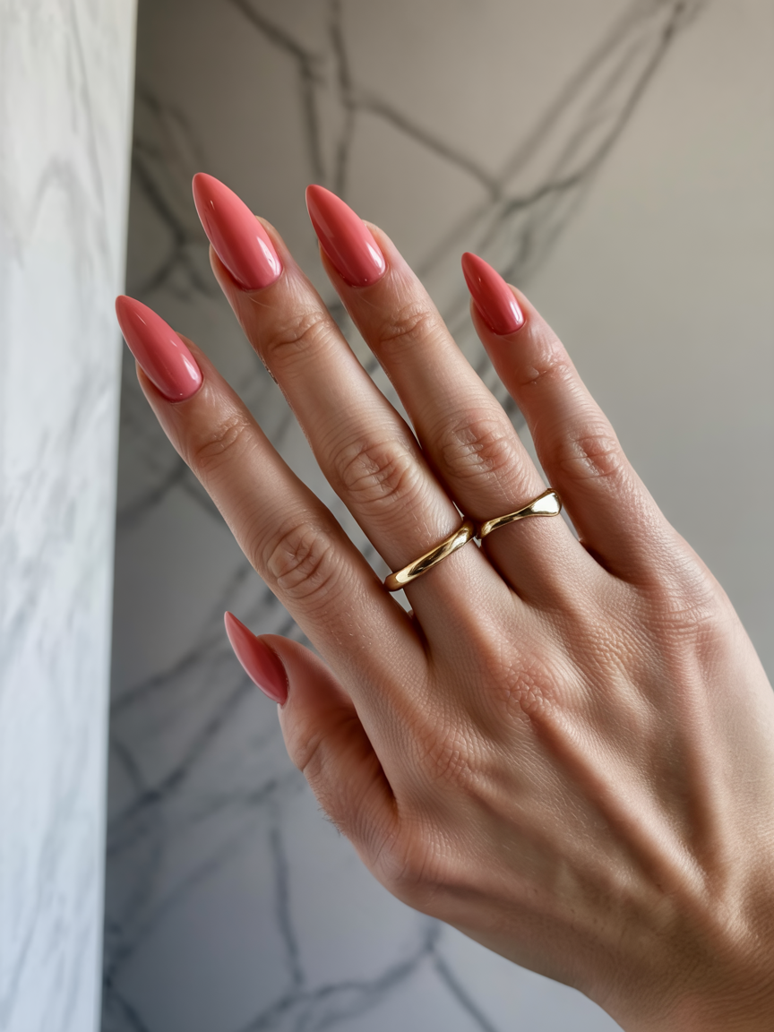 Compared to bolder coral or neon options, this design is more understated and versatile. It works especially well on almond shapes and pairs easily with everyday outfits. If you appreciate polish that feels timeless rather than trendy, this one delivers.