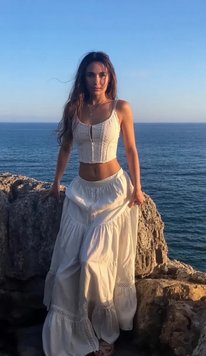 This style pairs beautifully with lightweight summer outfits—a flowing dress or even a maxi skirt. It works best on naturally wavy or slightly textured hair and doesn’t require much styling beyond a bit of salt spray. The result is a soft, feminine look that feels both easy and put together.