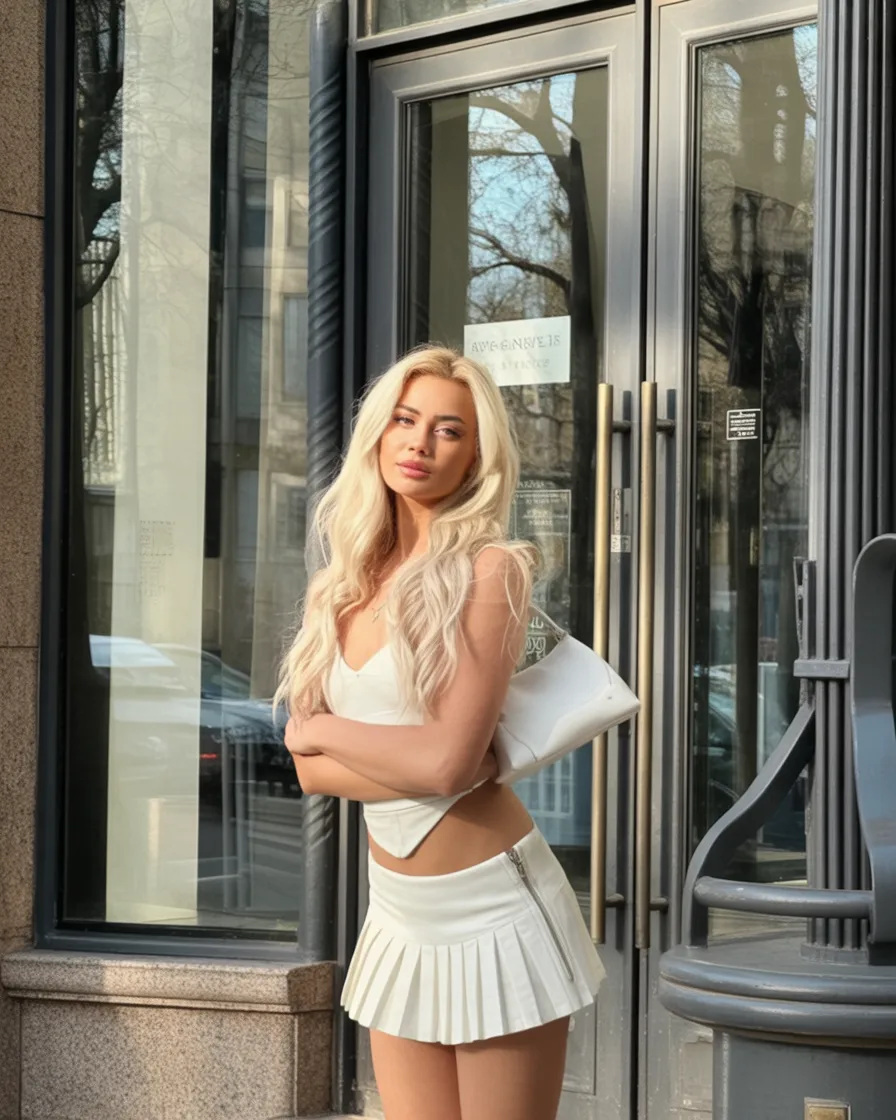 This look feels like that perfect in-between moment—when you’re out for a walk, iced drink in hand, and everything just clicks. The straight blonde hair has a natural fullness that doesn’t feel overworked, giving off that relaxed, confident energy. It’s the kind of style you’d wear on a Casual afternoon, maybe strolling through a park or heading to a low-key Winery with friends.