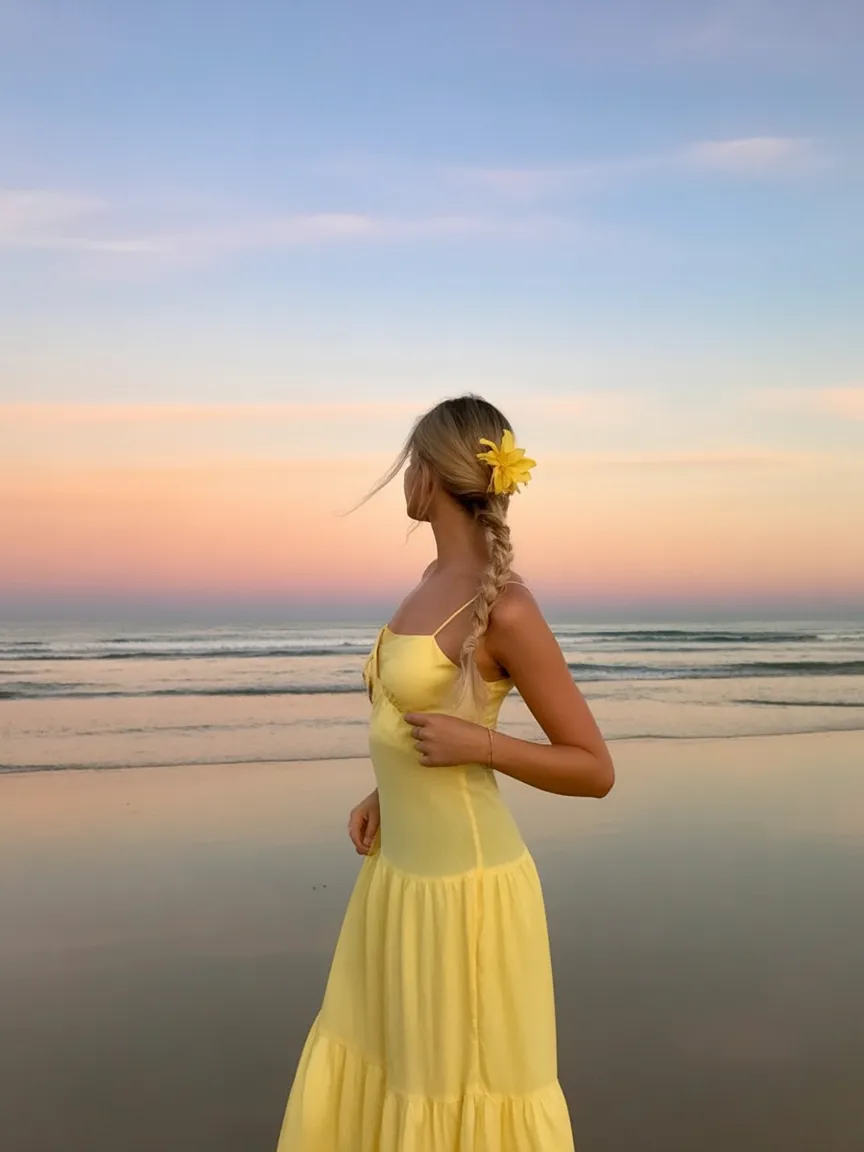 There’s something undeniably dreamy about this look—it captures that golden-hour glow in the most effortless way. The soft waves combined with natural highlights give the hair depth and dimension, creating a relaxed, beach-inspired vibe. It feels like a quiet escape, like walking along the beach at sunset with nowhere else to be.