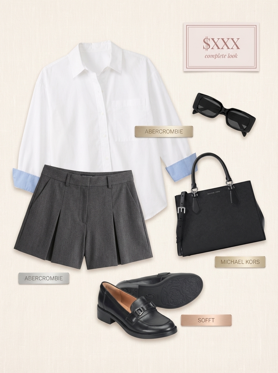My honest take? These shorts are definitely tailored, so if you prefer a looser fit, you should skip this particular ensemble. The entire outfit, including the $144.95 black leather loafers, comes to a total of $385.15, which feels like a mid-range investment for pieces that can be worn separately too. I wore these for 6 hours of city walking and a casual lunch, and the tailored shorts actually remained comfortable and chic. Who knew?