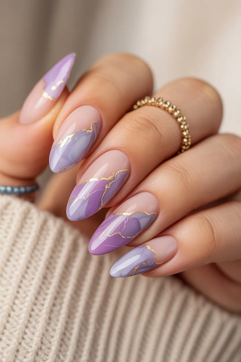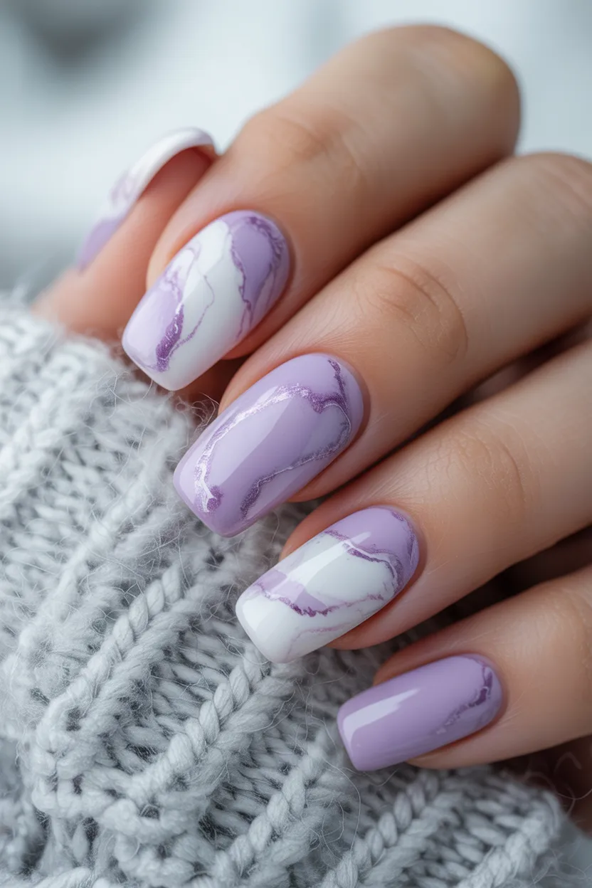 This design is especially flattering if you prefer Short to medium Square nails because the structure balances the fluid marble effect. Purple tones are trending again for Spring 2026, and this lighter shade feels wearable even if you usually stick to Simple manicures. It’s polished enough for the office but still interesting enough to spark compliments.