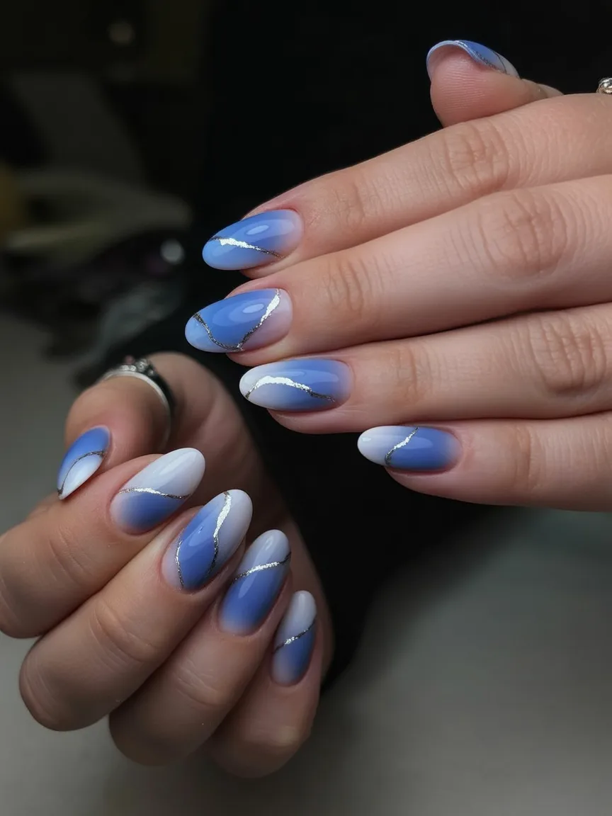 This layered Blue aura with White marble detailing feels calm and quietly powerful at the same time. The cool tones melt into each other like ocean waves, while the fine gold lines add that touch of elegance that makes the whole design feel elevated. It’s serene but not boring—sophisticated without being stiff.