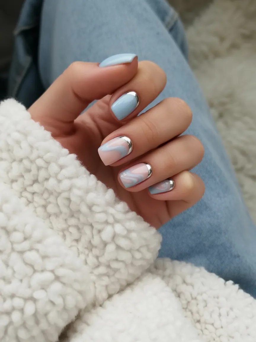 This is perfect for Short nails if you want something clean but not boring. The Blue tone brightens the hands beautifully, especially in Winter or early Spring, while the Chrome detail gives it that 2026 edge. If you’ve been stuck in neutral manicures, this is a gentle, wearable step into color.