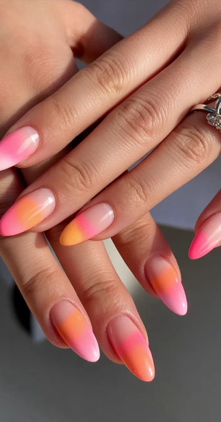 If you love a little color but don’t want anything too loud, this style hits the sweet spot. The soft gradient flatters medium to long nails and works beautifully on Acrylic extensions if you want extra length. Keep the rest of your look Simple — glossy lips, gold hoops—and let your nails do the talking. It’s especially gorgeous for Summer vacations or when you just need a tiny burst of joy at your fingertips.