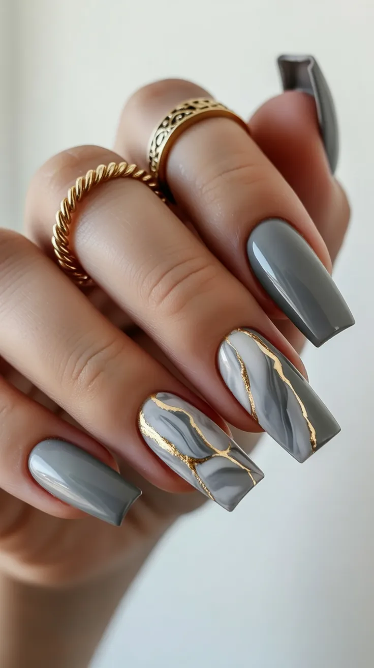 This smoky Gray design is what I call quiet power. It’s cool, composed, and a little mysterious—like a perfectly tailored coat in the middle of Winter. The marble detailing with fine gold lines adds movement to the otherwise solid tone, turning a Simple neutral into something that feels intentional and elevated. It’s modern without being trendy, which honestly makes it timeless.