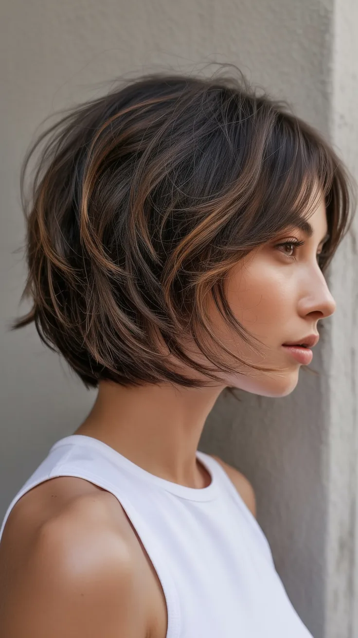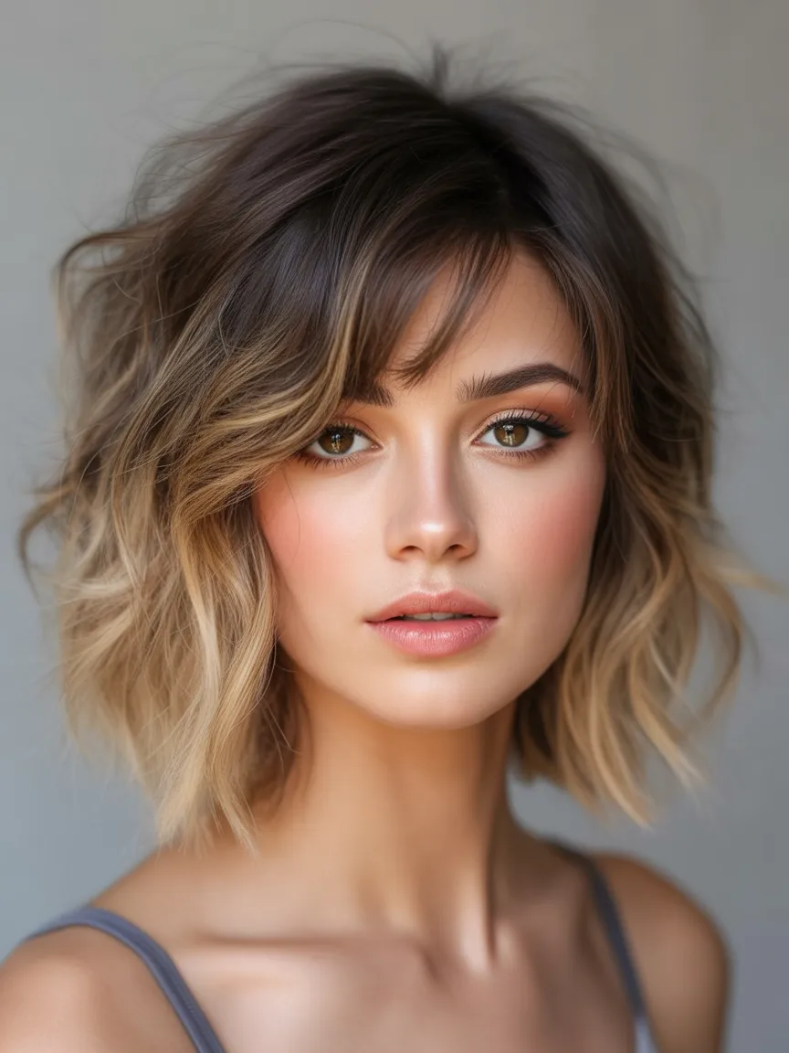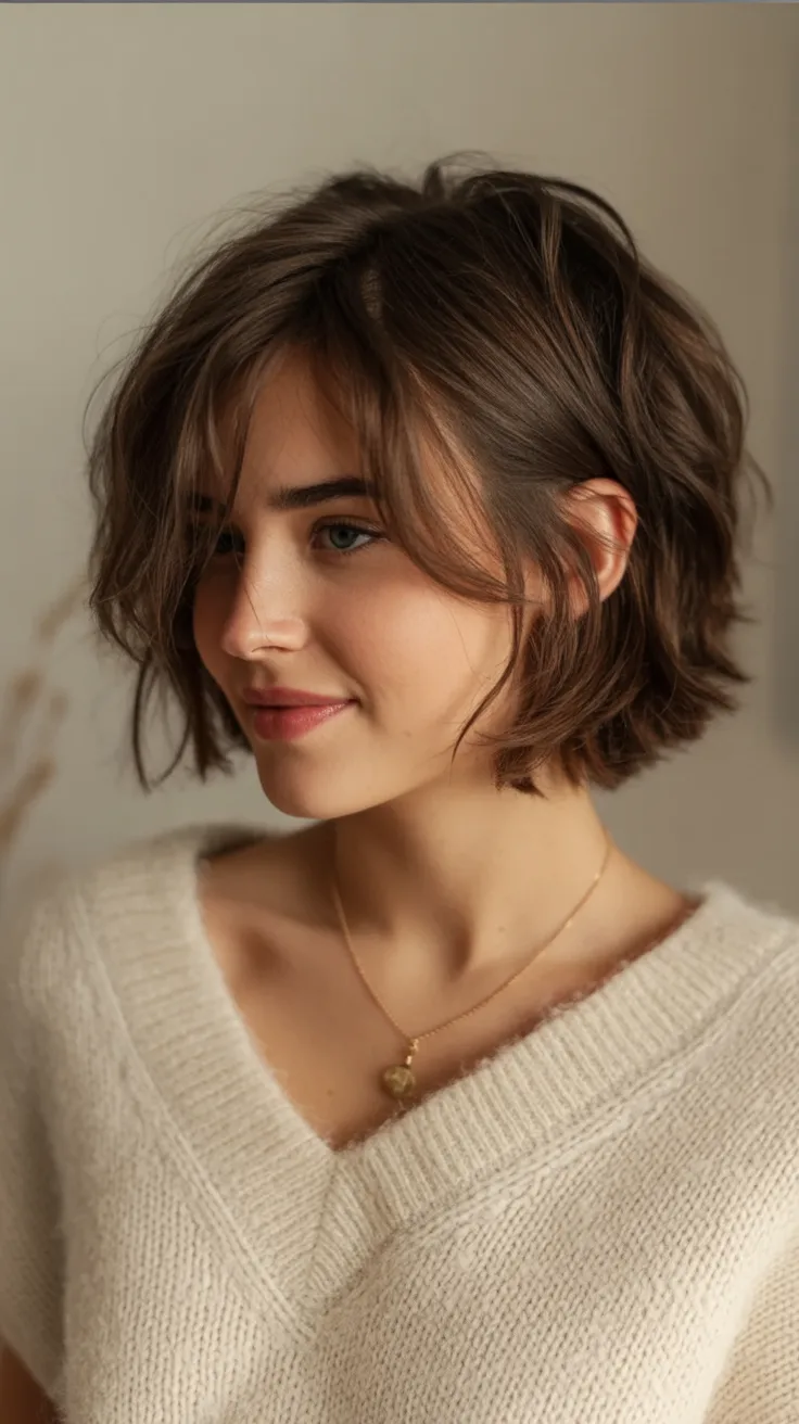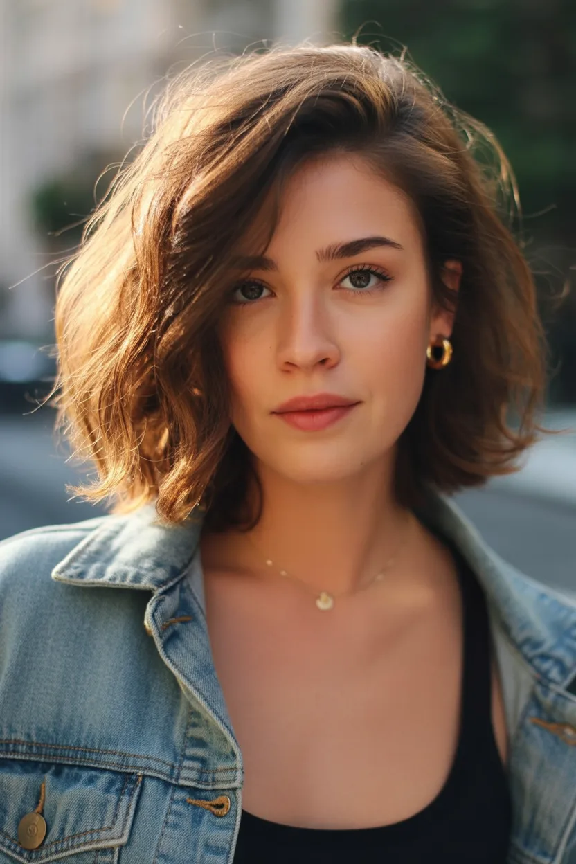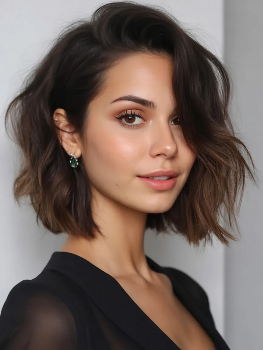 There’s something wonderfully freeing about a softly tousled bob like this. It has that relaxed, slightly windswept charm that makes a woman look effortlessly stylish without appearing overdone. The gentle texture gives the cut personality, almost like every strand has its own little story. It feels youthful and modern at the same time—the kind of haircut that quietly refreshes your whole look while still feeling natural and easy.