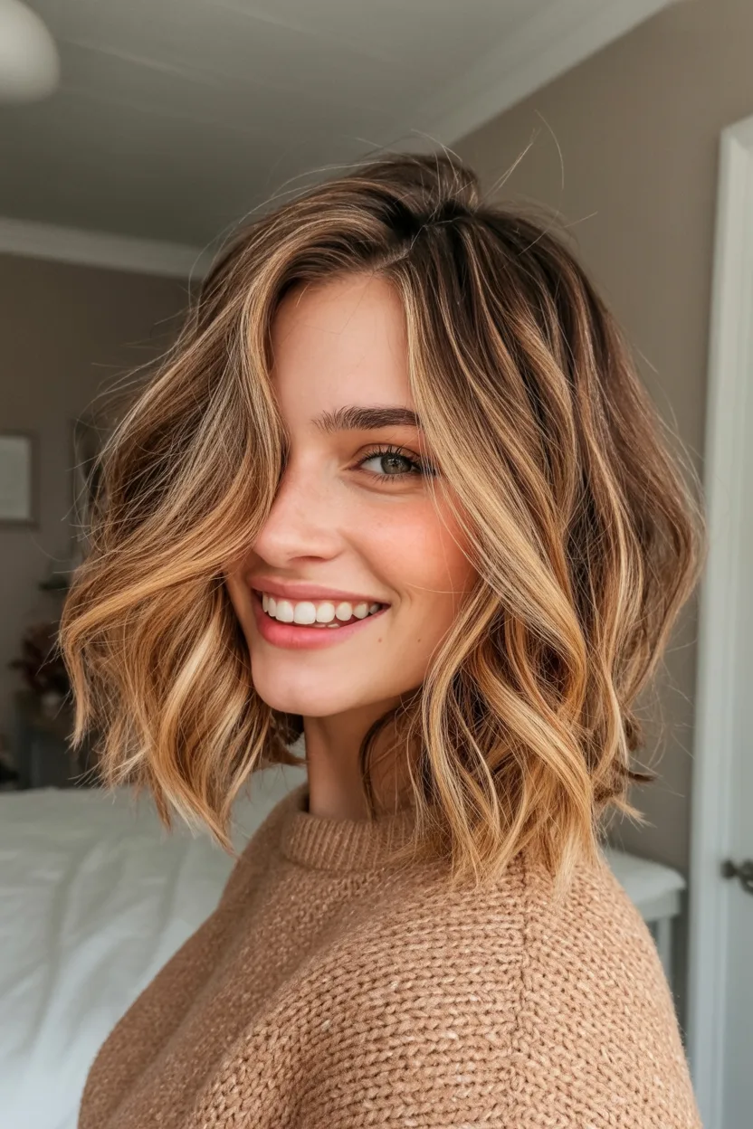 21. Soft Wavy Layered Bob with Natural Volume
