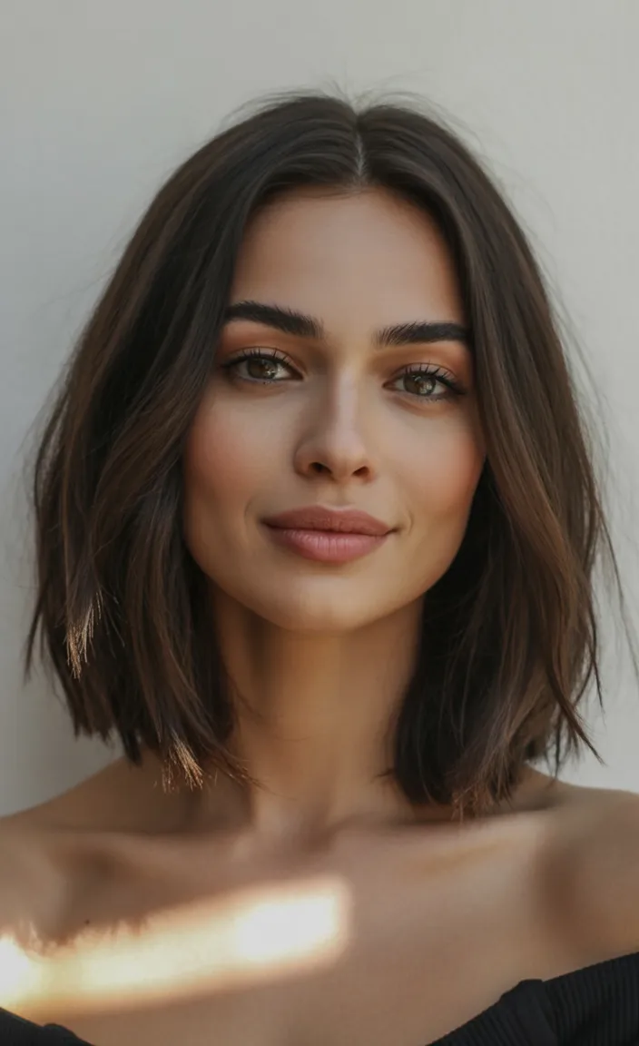 This Medium bob carries a calm, timeless elegance that never feels outdated. The clean center part gives the haircut a balanced, symmetrical look that highlights the natural beauty of the face. It’s simple in the best possible way—refined, polished, and quietly confident. Sometimes the most striking hairstyles are the ones that don’t try too hard.
