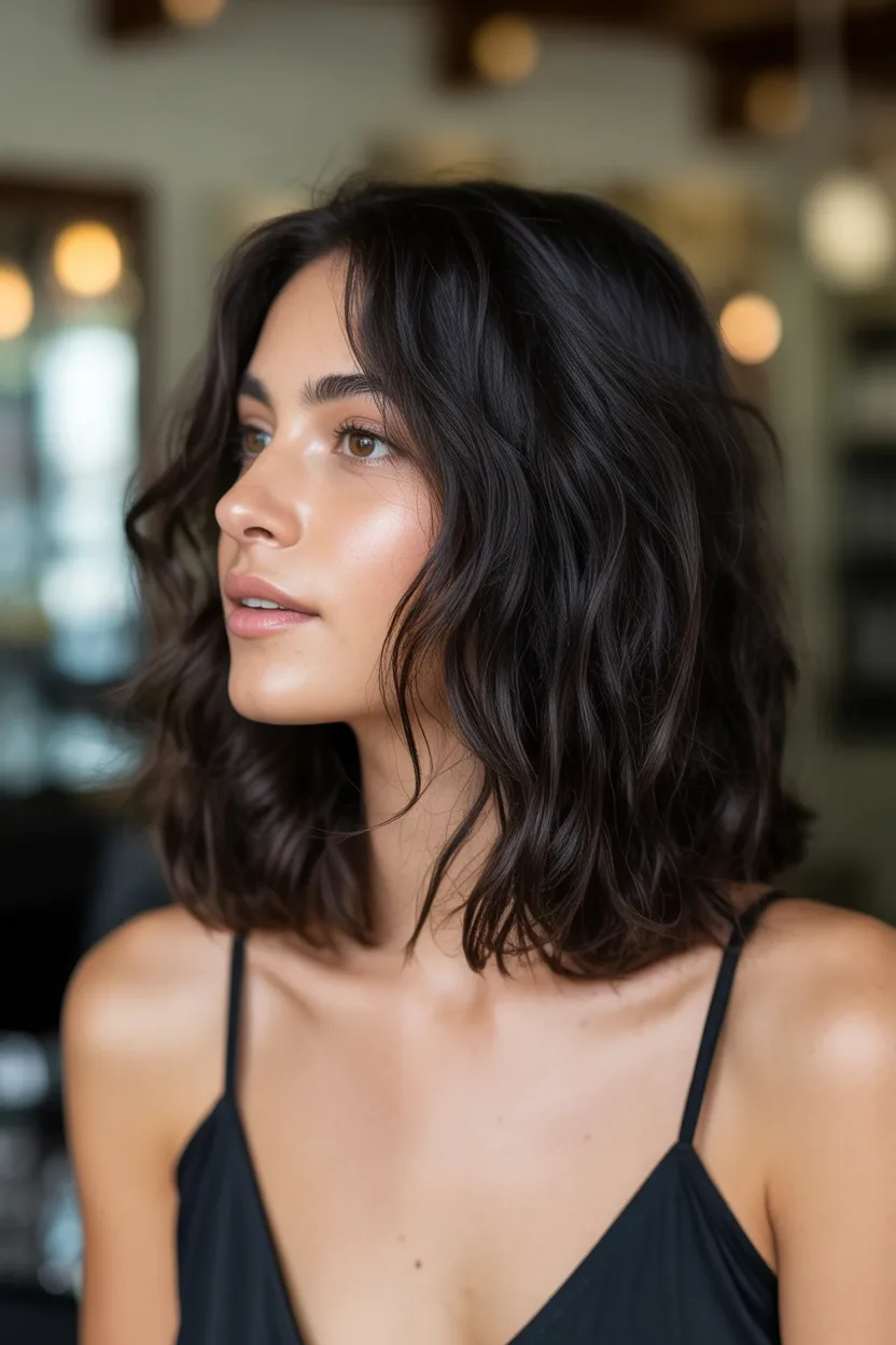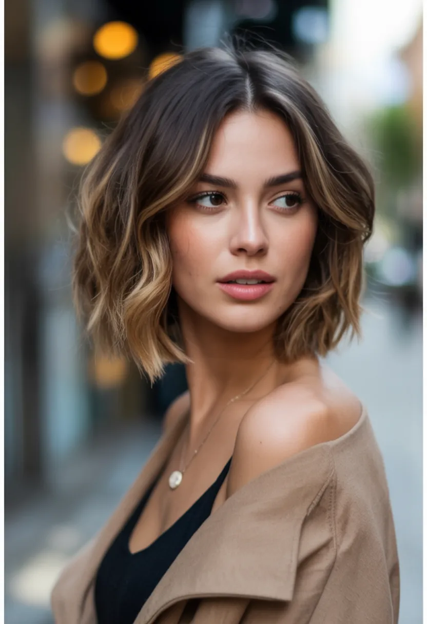 A Layered Wavy bob like this is ideal for women who want volume without complicated styling. The natural movement makes it especially flattering for Fine hair, helping strands appear fuller and more dynamic. A touch of texturizing spray enhances the waves and keeps the hairstyle looking effortlessly stylish throughout the day.