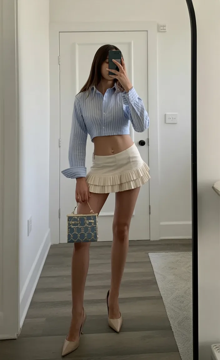 This look goes well with structured pieces, statement sunnies, or a bold lip. Straight or slightly wavy hair works best, and all this needs is a quick blow-dry and some smoothing cream. If you want an understated yet powerful fresh style, this one,\\ you know,\\ has that quiet confidence that turns heads.