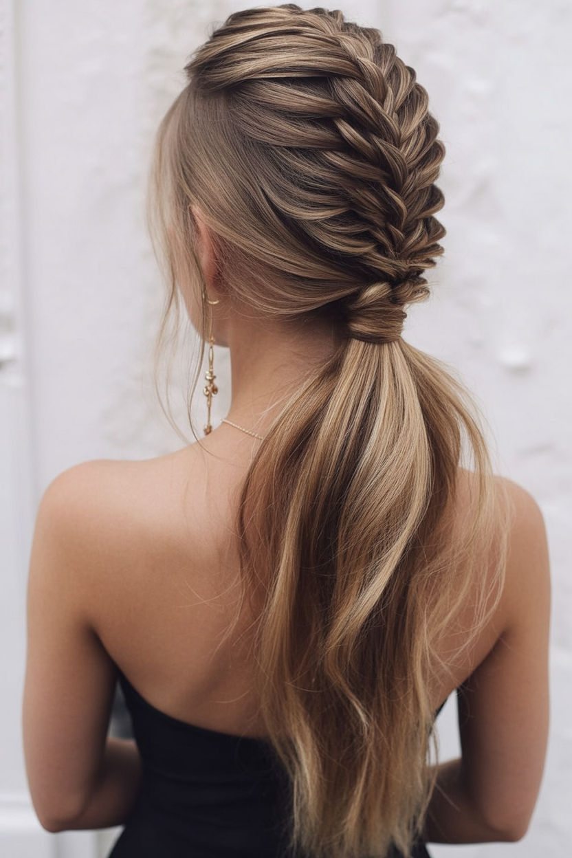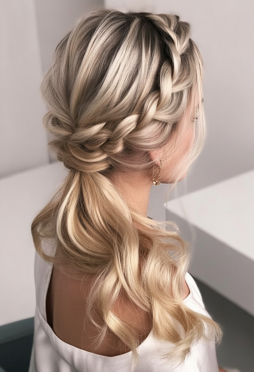 This ponytail with a braided crown screams polished romance. The delicate twist of the braid adds an element of softness in crown whereas the flowing effect of the ponytail waves give a natural touch of glamour. It’s the kind of hairstyle that carries confidence, but with a sweet, grounded elegance.