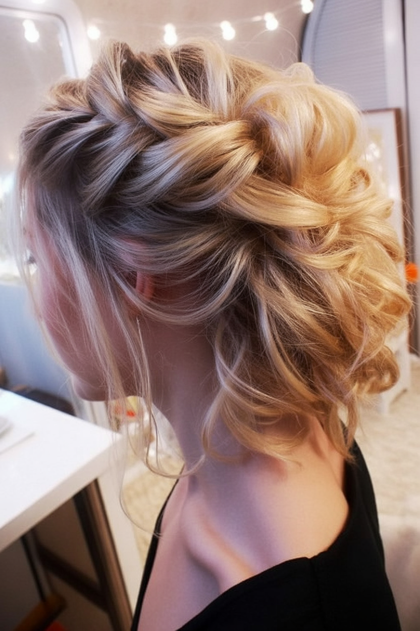 This high bun that looks curly is delivering such main character energy, unapologetic, gorgeous and apparently effortless style. The bounciness of the curls down the sides and front make this look flirtatious and messy yet lovely and bonny on the top, heaps up volume. That is the sort of updo that does not overdo the hair but still gets people to look up.
