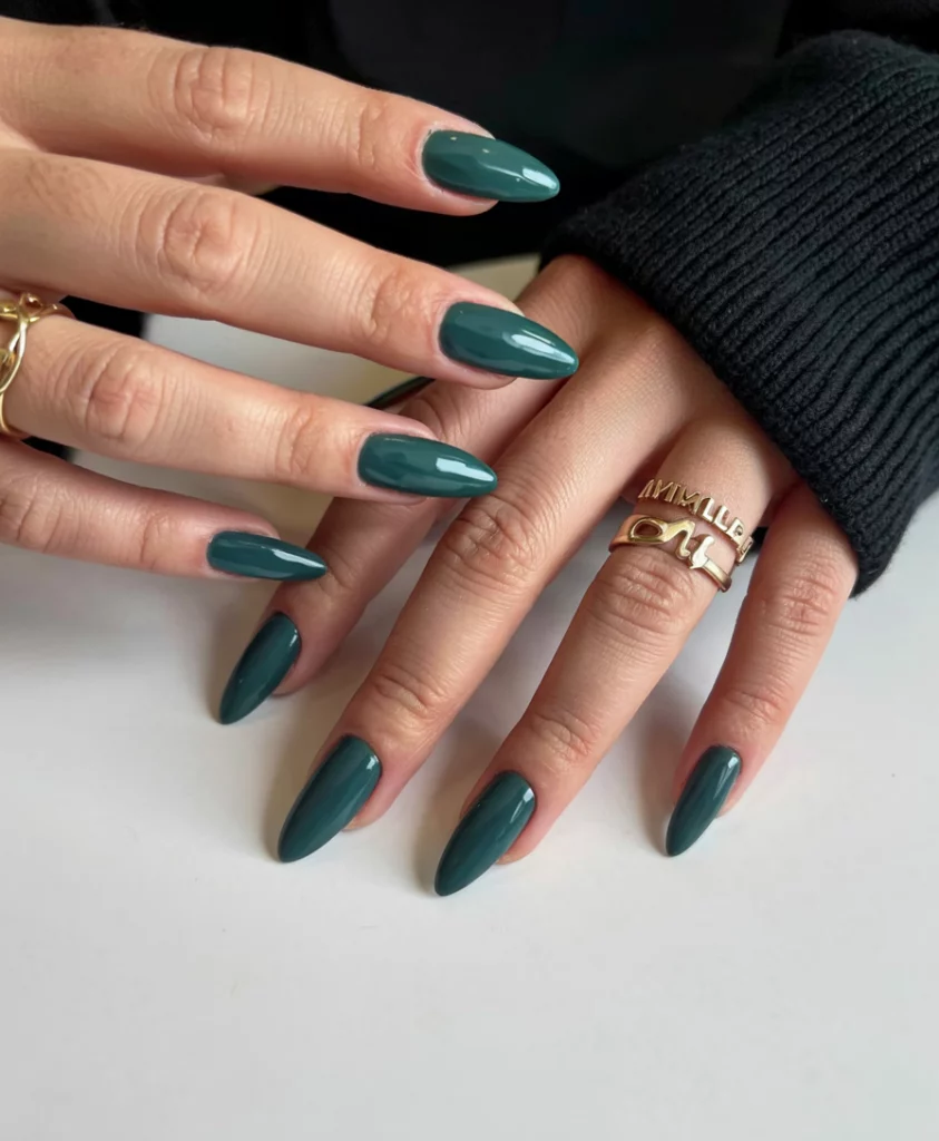 There’s something almost cinematic about this deep teal manicure. It is hip, understated and incredibly chic – like a wool coat and leather boots duo in polish form. The smooth finish and almond profile combine to be super sleek and yet at the same time day-to-day wearable.