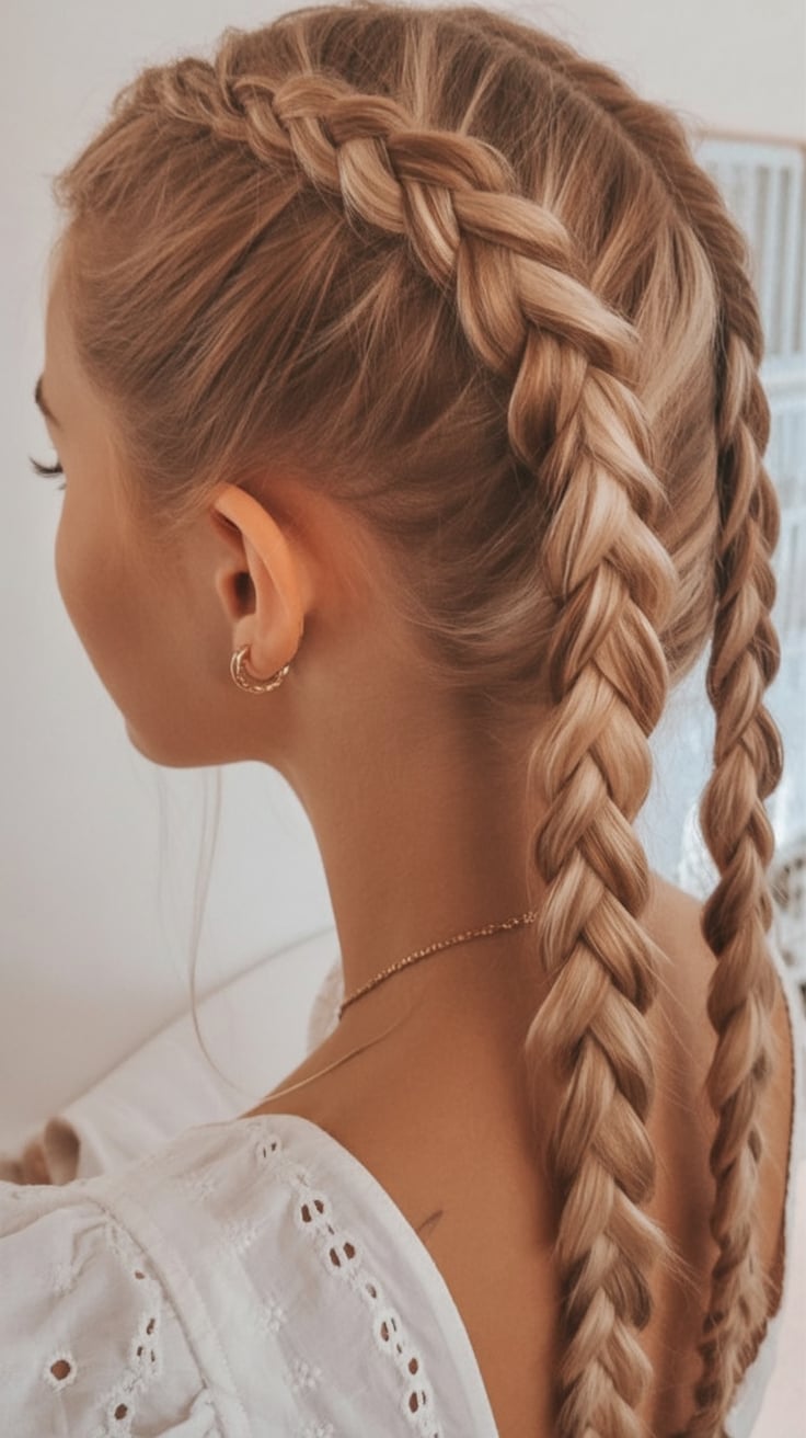 There’s something nostalgic yet chic about these double Dutch braids. It’s the kind of style that feels clean, classic, and quietly powerful — like the fashion equivalent of a white button-up shirt. Easy, symmetrical, and totally satisfying.