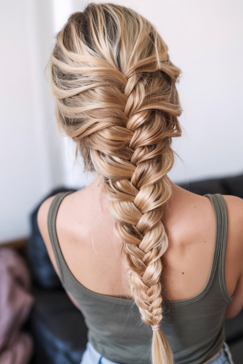 This braid look is perfect for medium to long hair and ideal when you need a go-to style that lasts all day. A little mousse before braiding helps hold shape and reduce flyaways. It’s a low-maintenance choice for workdays, gym sessions, or fall walks in the park.