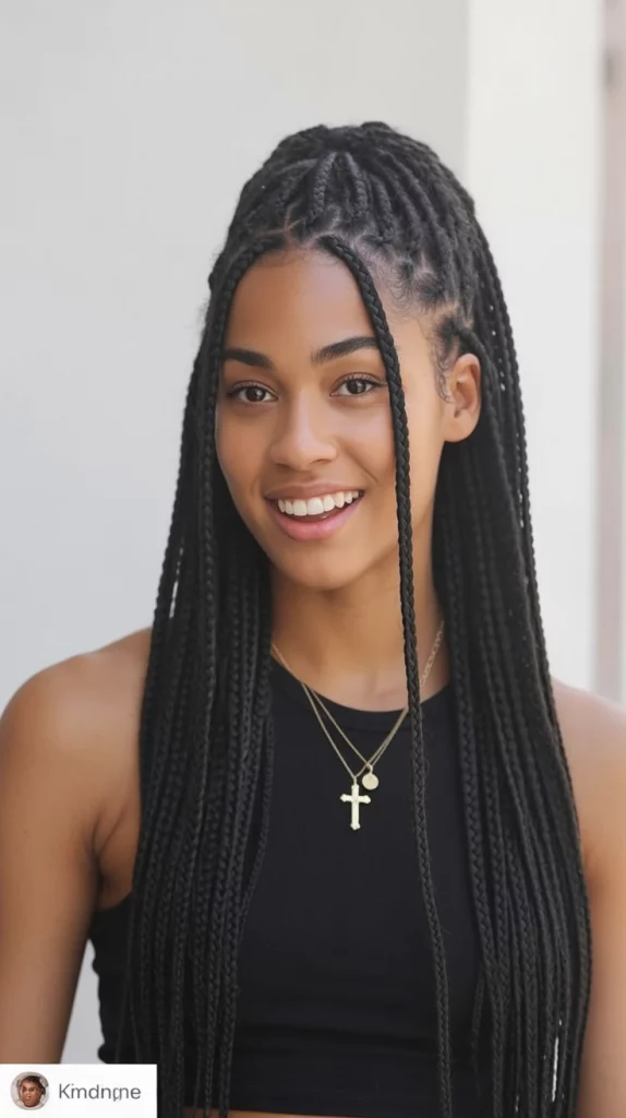 Ideal for black women 2025 who crave a statement-making style that’s also functional. These braids are low-maintenance and can last weeks with proper care. Apply scalp oil regularly and sleep in a silk scarf to maintain that fierce, fresh vibe. It’s a power move — literally.