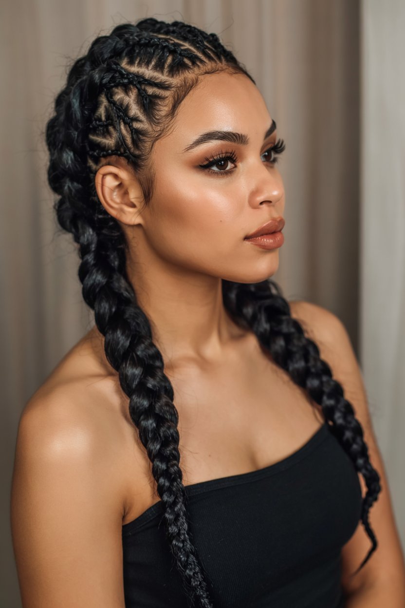 Clean, chic, and endlessly wearable — these sleek twin braids give off cool-girl vibes while keeping your hair beautifully protected. It’s a style that works from gym to brunch and looks effortlessly polished every time.