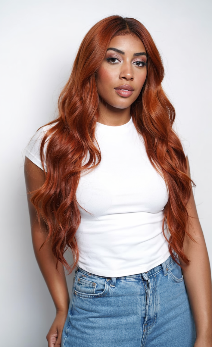 Bold, rich, and sleek — this long ginger straight style is pure fire for fall. The warm hue radiates confidence and vibrancy, while the ultra-sleek length creates a commanding presence. It’s a look that instantly elevates your vibe, perfect for making a chic seasonal statement in 2025.