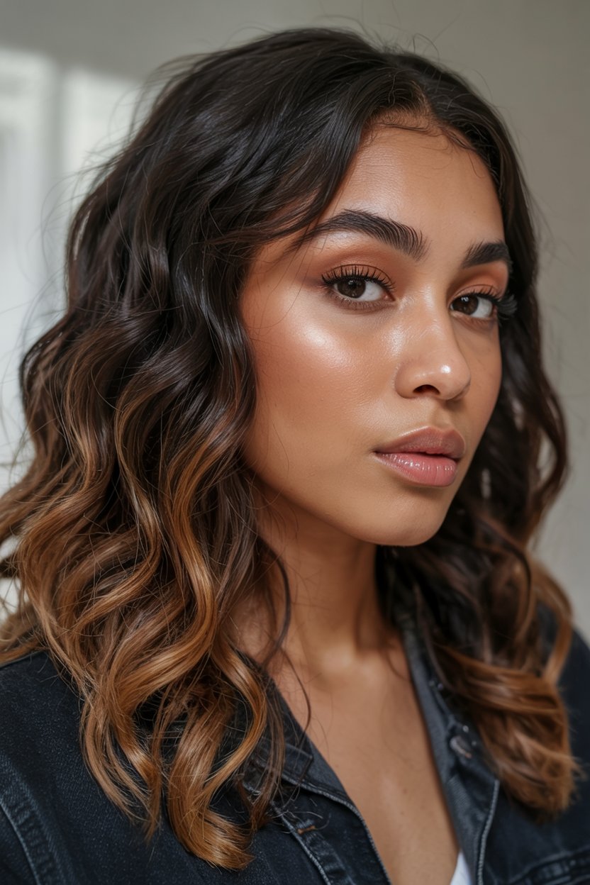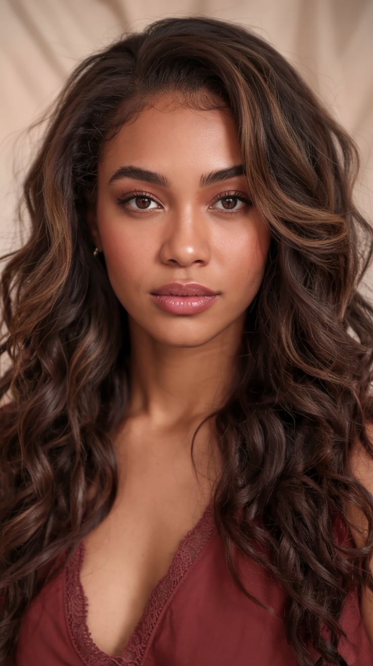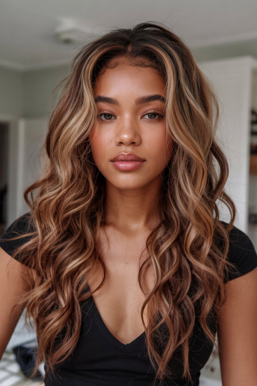This style works beautifully on natural curls or weave, especially if you love a bit of glam. Use a curl-defining mousse and diffuser for bounce and fullness. The highlighted strands naturally frame the face, giving you a lit-from-within glow that makes your skin pop.