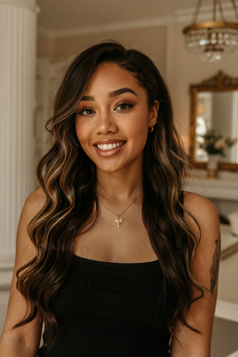 Soft, romantic, and effortlessly pretty — these loose curls with delicate highlights frame the face in the loveliest way. It’s that “I woke up like this” glam that never feels overdone, making it a perfect choice for fall.