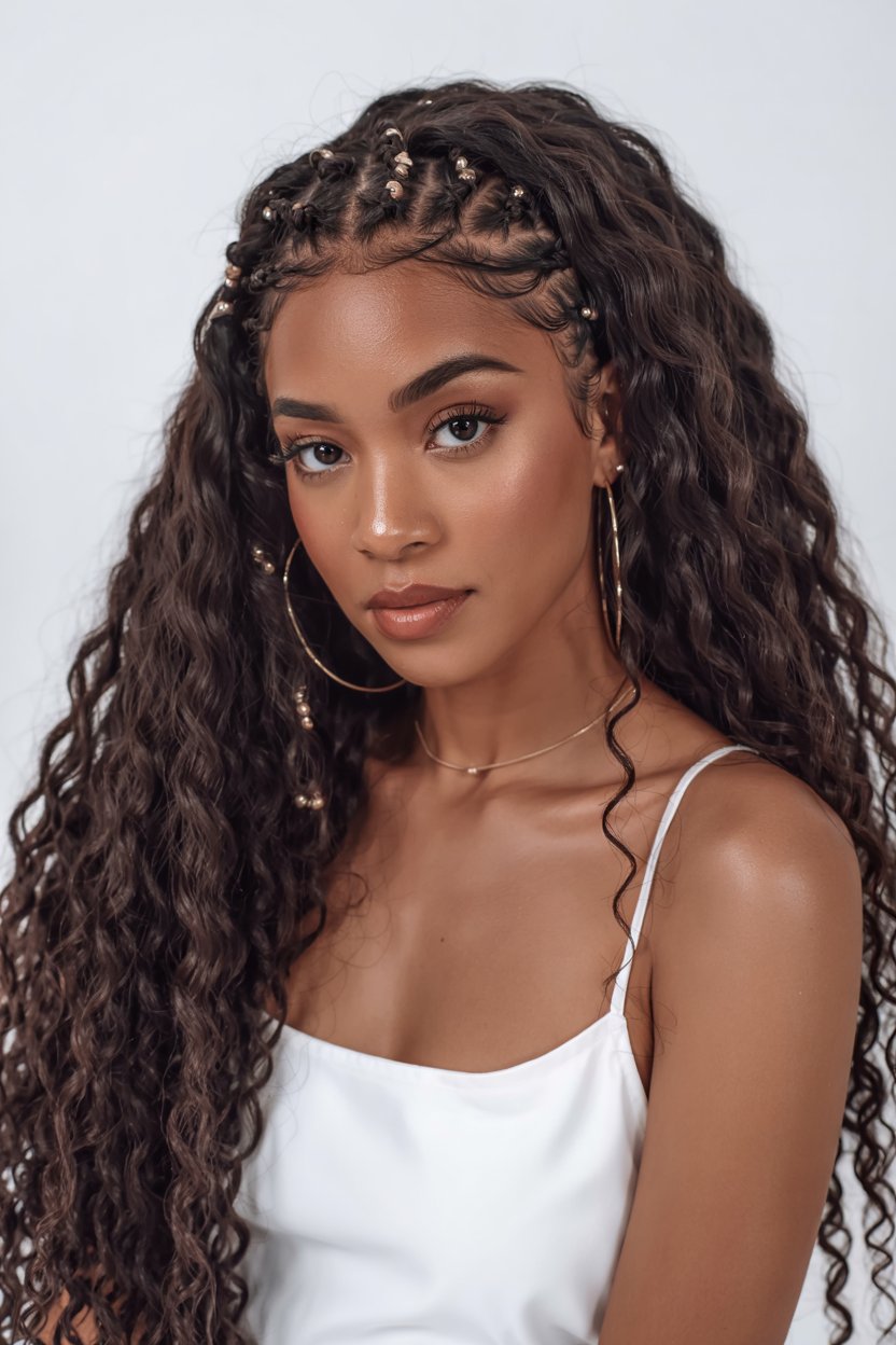 It’s a fantastic option for natural hair if you want a versatile protective style. Cornrows keep the scalp neat while the curls add softness and movement. Great for medium to long lengths, just refresh with curl mousse and a light oil to maintain shine.