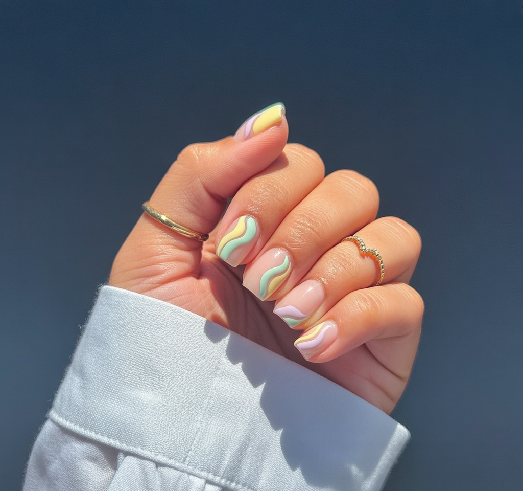 This manicure feels sunny and optimistic, like a fresh bouquet on your kitchen table. The blend of yellow and green with flowing lines brings warmth and creativity without feeling childish. It’s lighthearted but still refined, perfect for welcoming a new season with open arms.