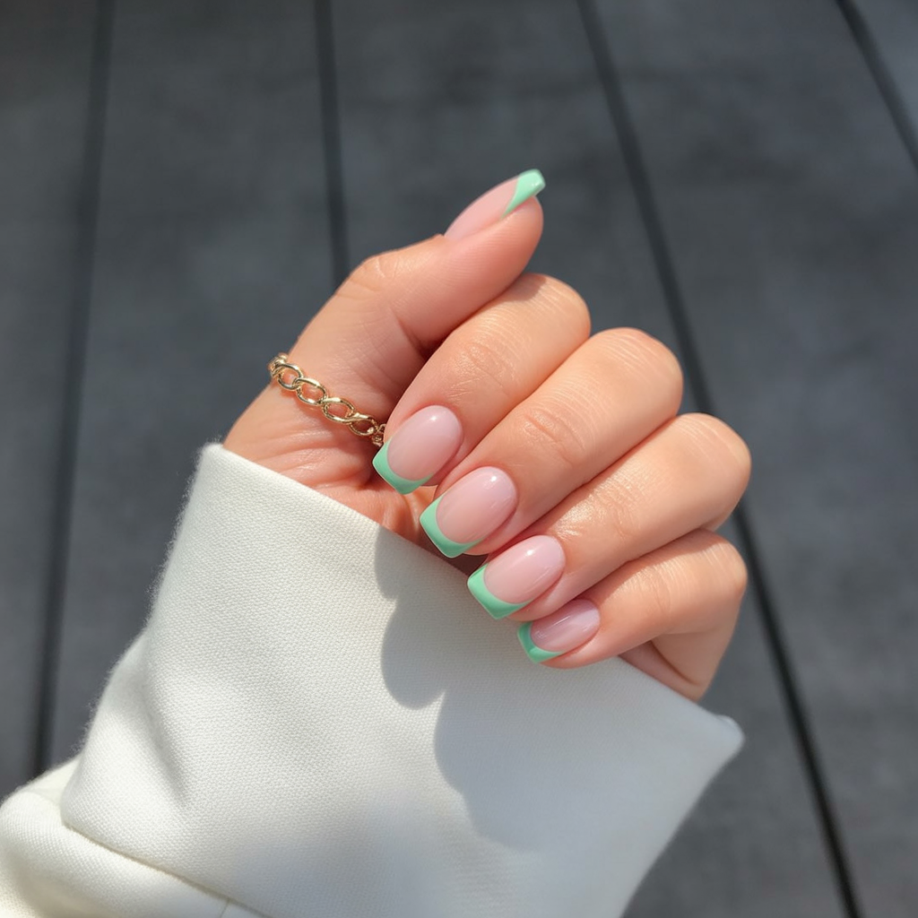 This look is clean, timeless, and effortlessly fresh. The soft mint tips against a natural base feel crisp and airy, like freshly laundered sheets or a morning walk in spring sunshine. It’s simple, elegant, and incredibly easy to love.