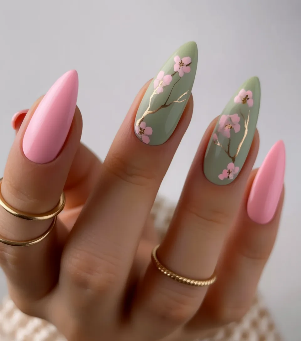 1. Sage Green & Pink Almond Blossom