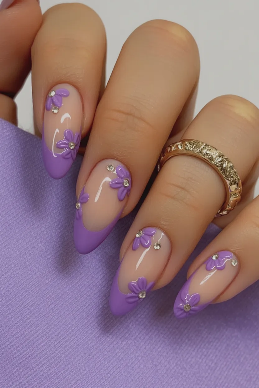10. Lilac Floral Almond with Crystal Accents