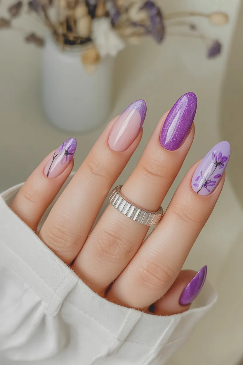 2. Lavender Shimmer Floral Almond
