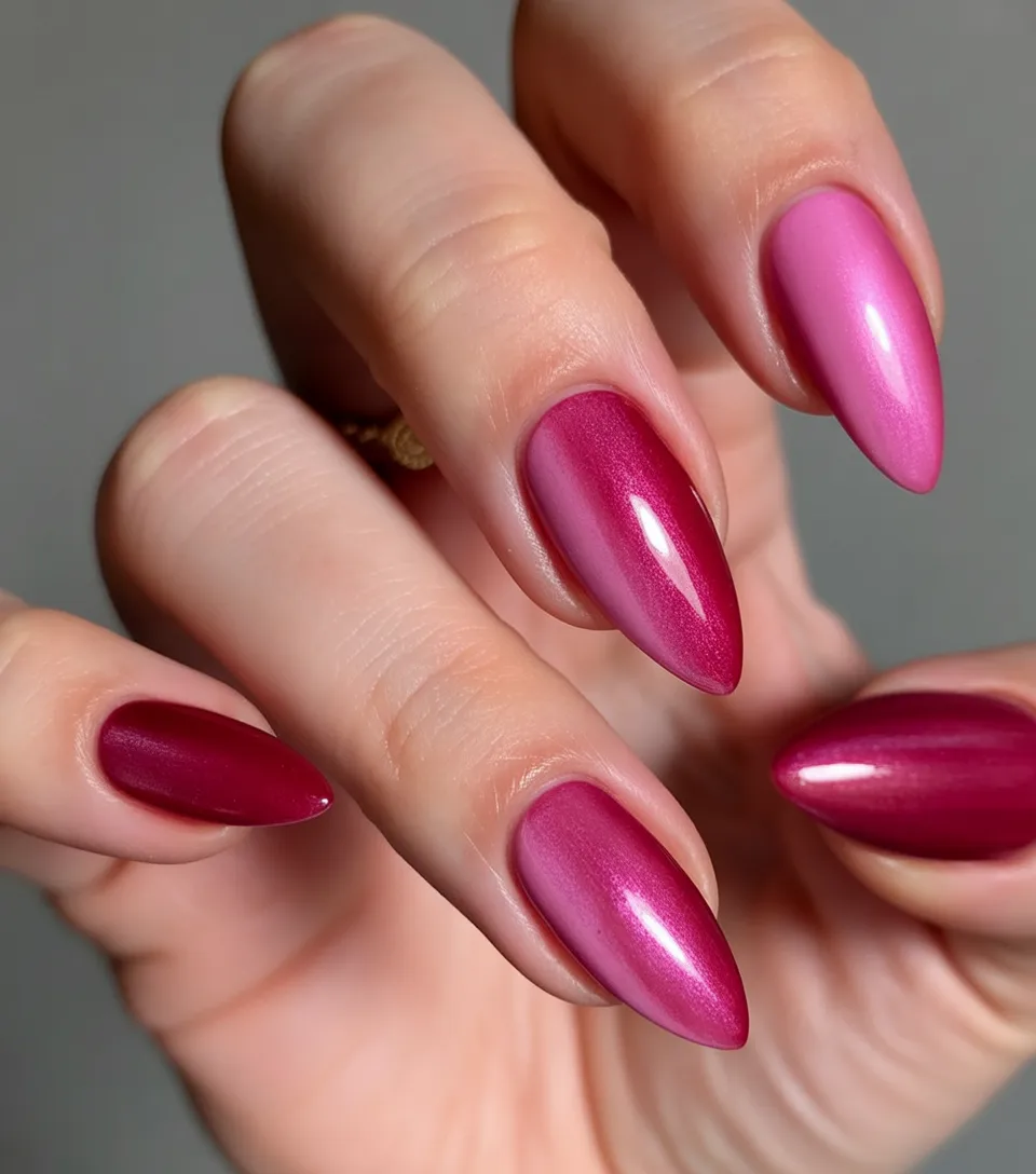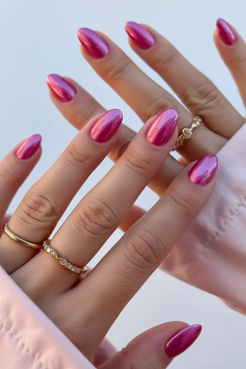 21. Raspberry Pink Chrome Almond Nails