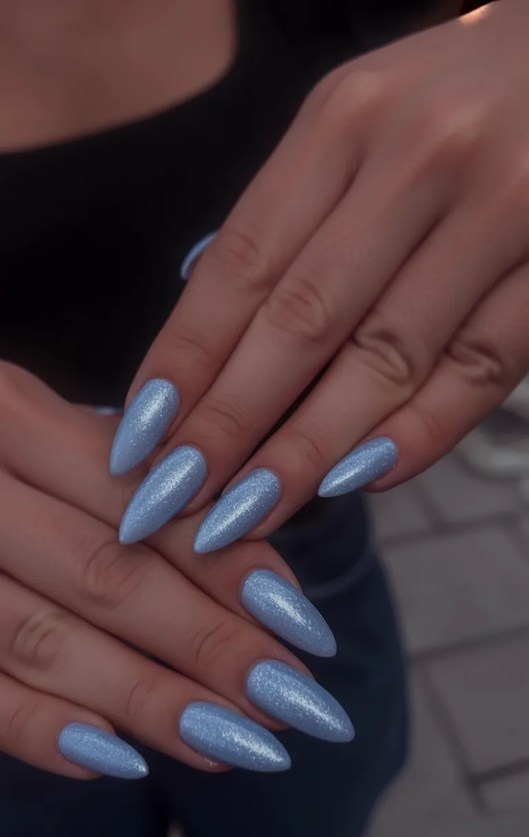 16. Soft Blue Almond Nails