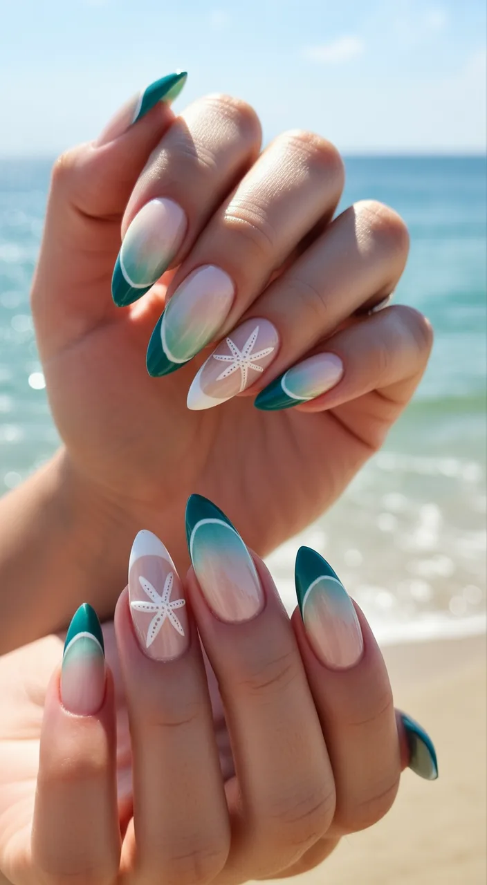 This teal chrome manicure feels artistic without being overwhelming. The soft, flowing Art details add movement and personality, making the design feel thoughtful and modern. It’s elegant with just enough creativity to stand out.