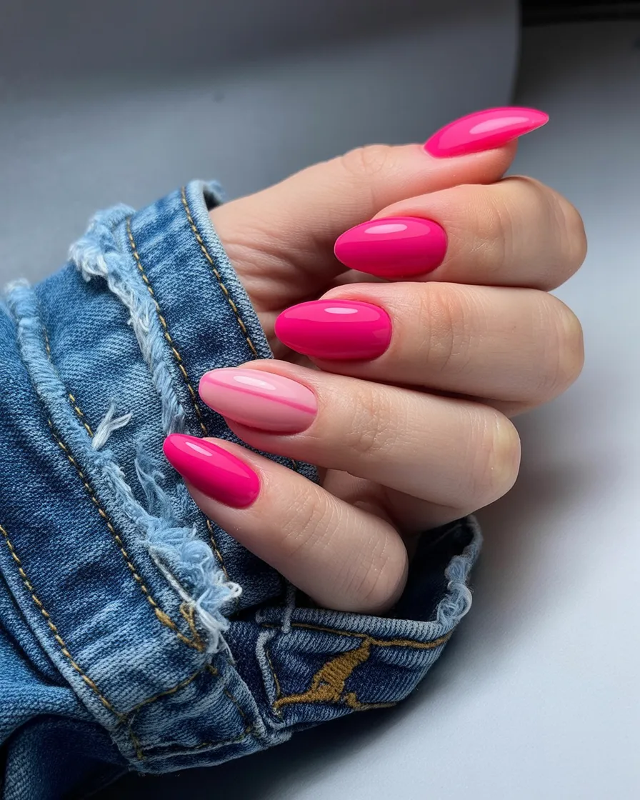 13. Hot Pink Almond Chrome Nails