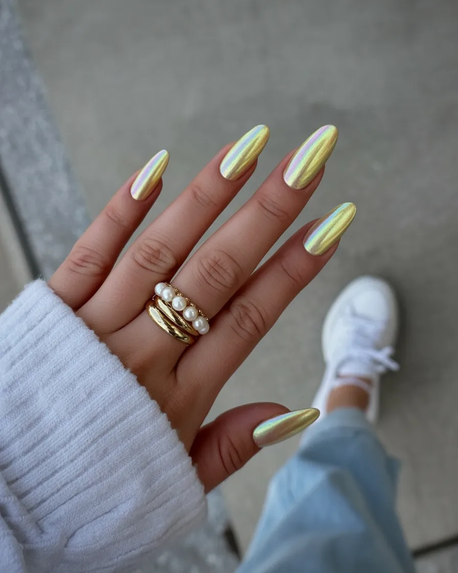14. Golden Chrome Almond Nails