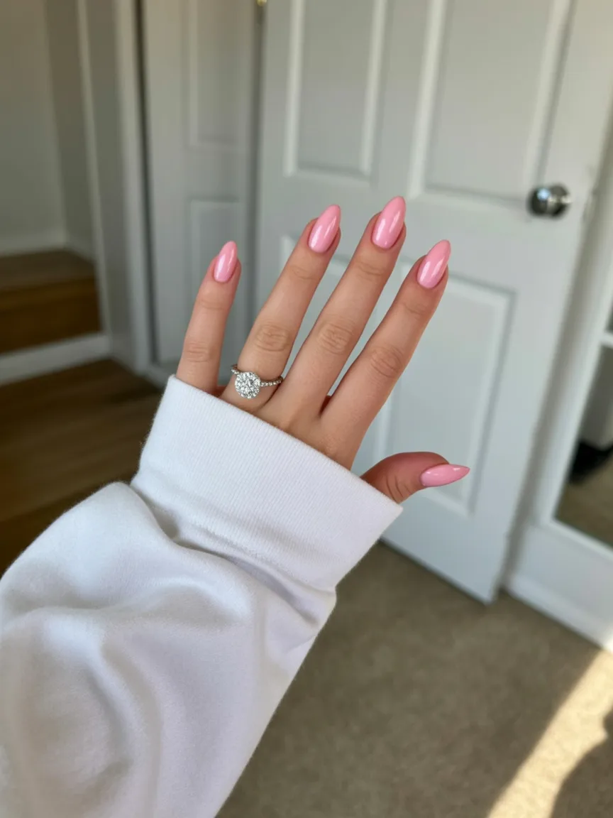 18. Pink Almond Nails with Glitter Accent