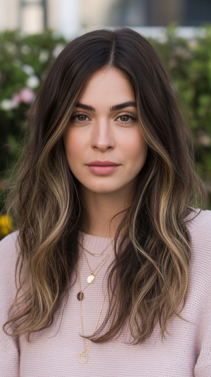 21. Soft Brunette Waves with Light Balayage