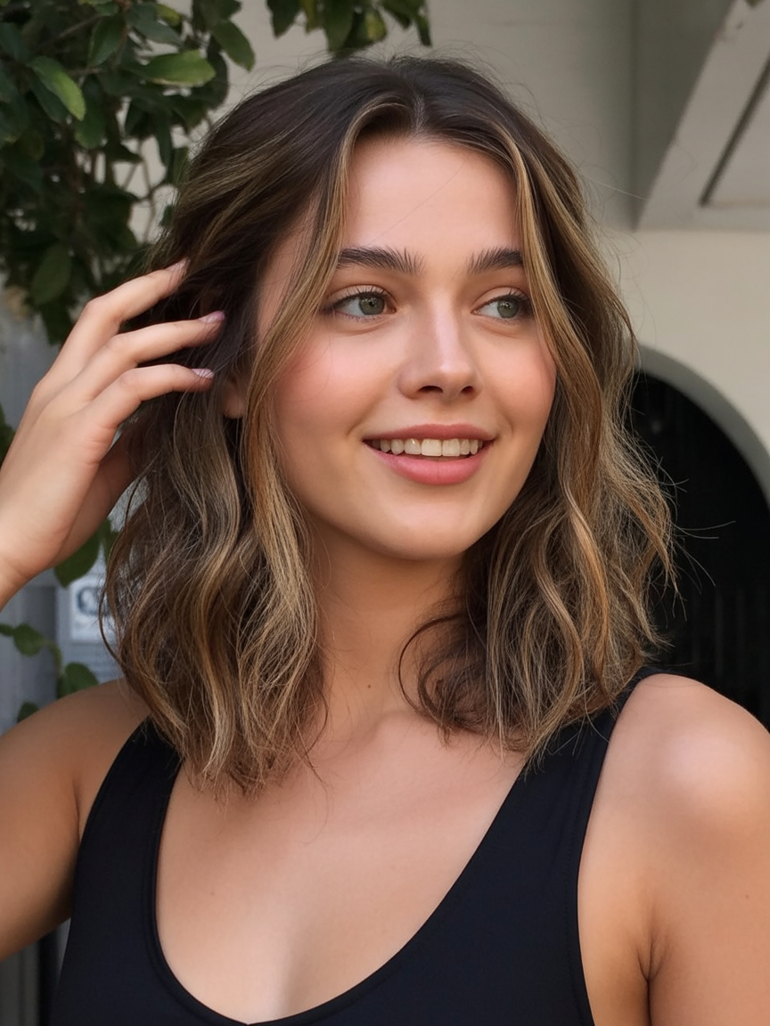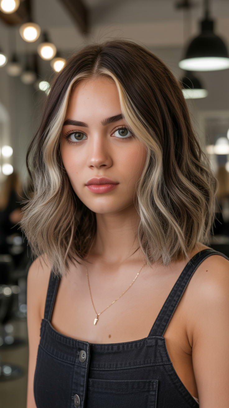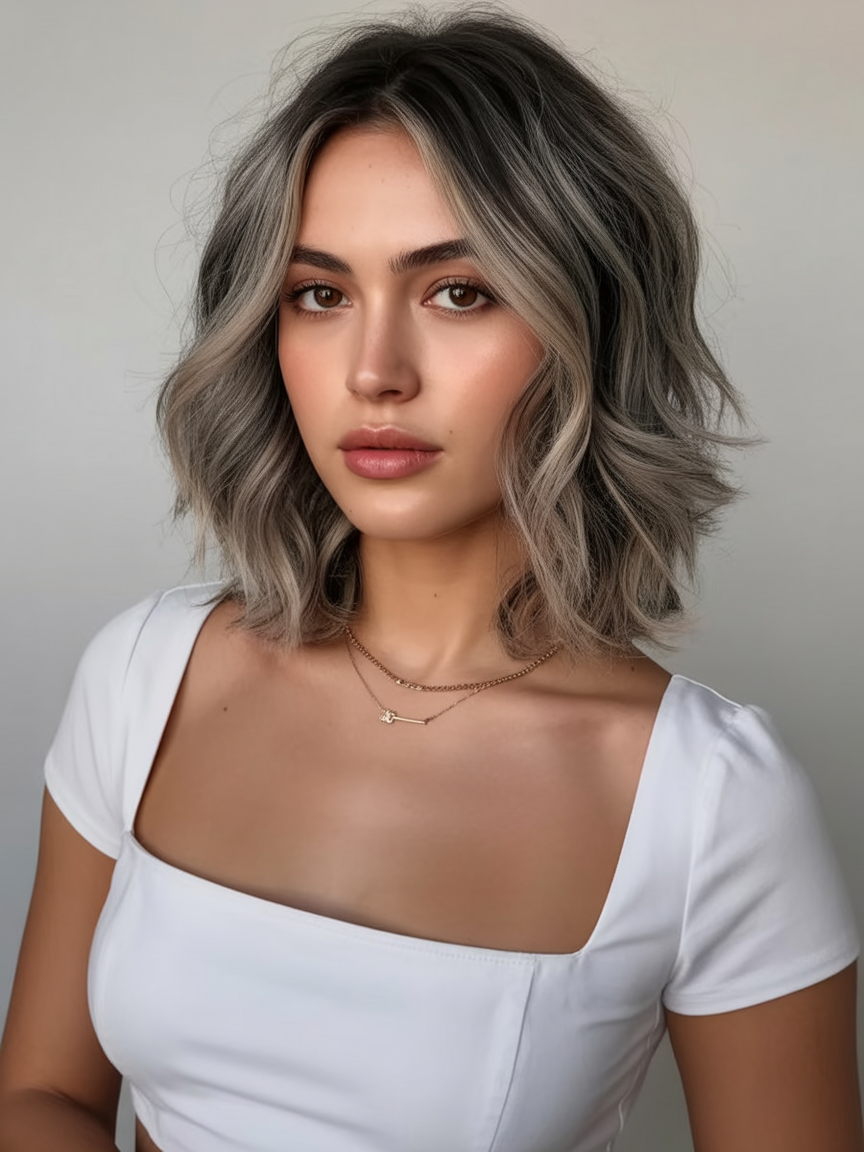 This bob feels modern and chic. The highlights melting into the bob create a subtle softness that brightens the entire look. This vibe feels confident and polished, yet still relaxed—best for women who want their hair to do the talking without being overstyled.
