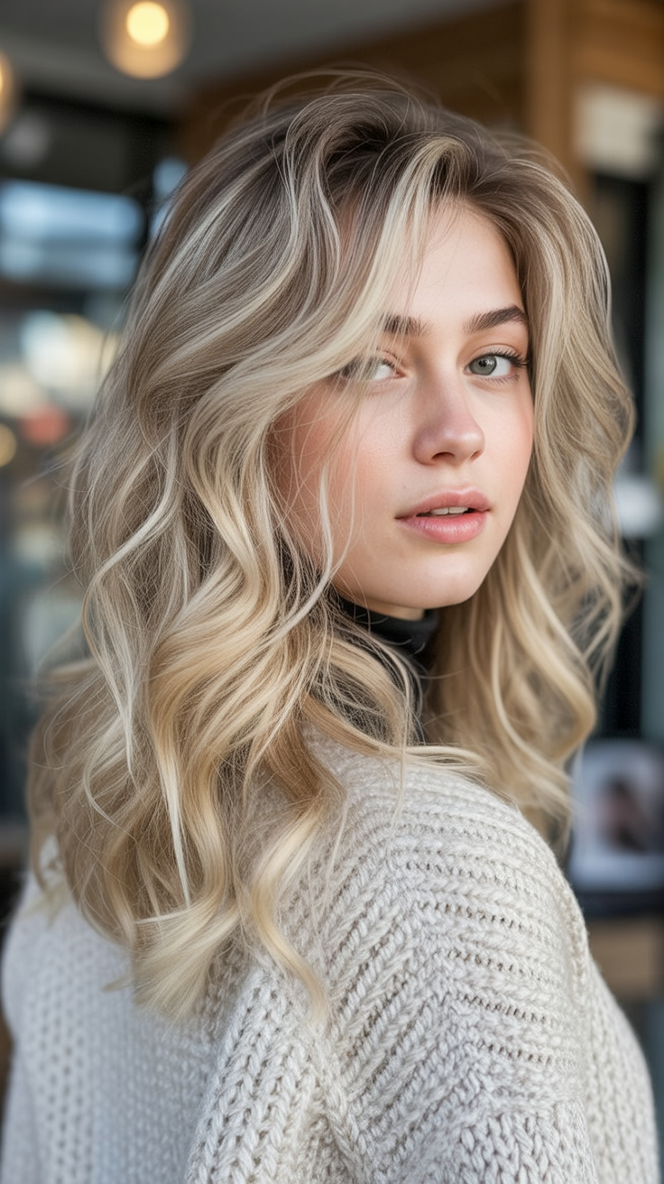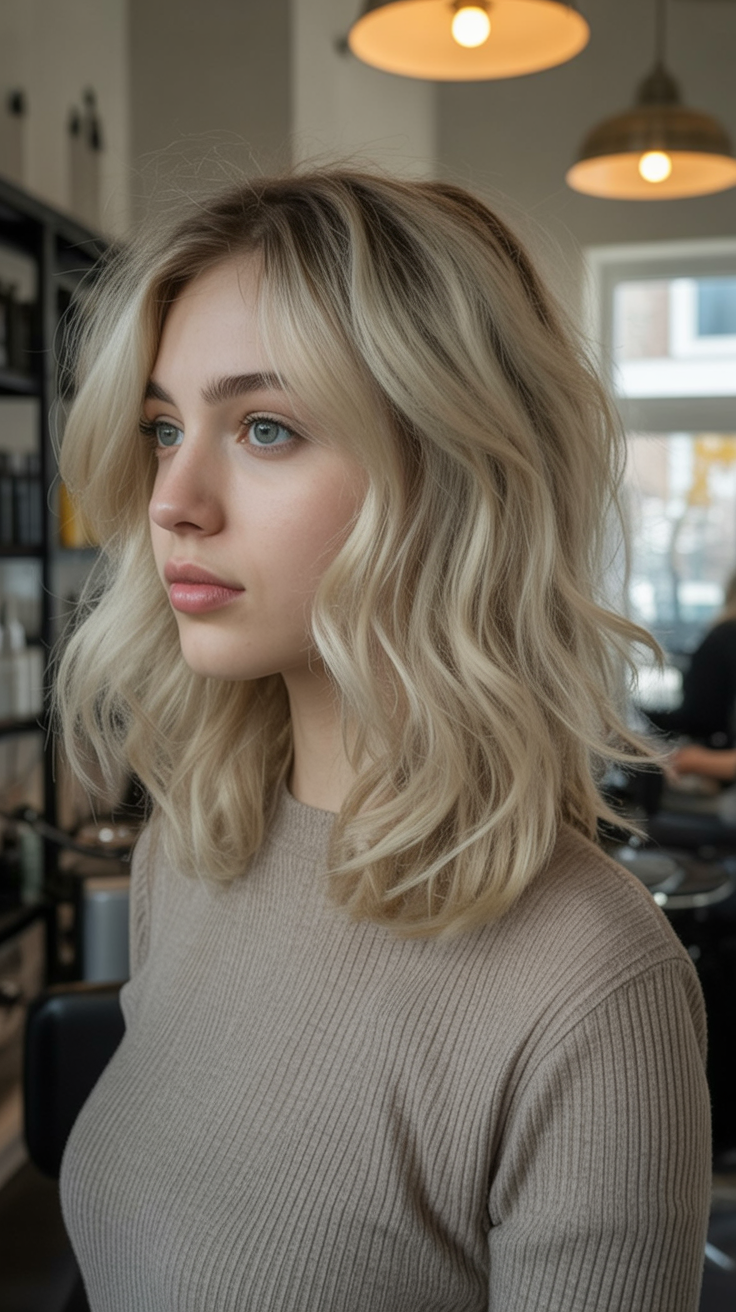 This look feels effortless and is the kind of style that looks just as good from behind as it does from the front. The combination of soft waves and cool blonde evokes a light and airy mood that feels calm and confident. There’s an understated elegance here—nothing flashy, just beautifully balanced hair that moves naturally and frames the face in the most flattering way.