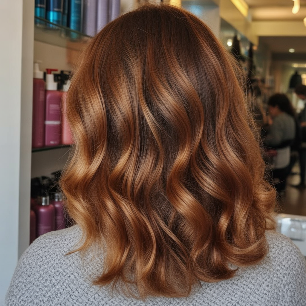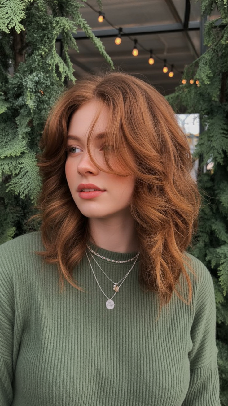 If you’re choosing between classic brown and going full red, this is a beautiful middle ground. It offers fresh ideas for brunettes who want a seasonal shift without committing to something too intense. Style loosely to keep the look modern and relaxed.