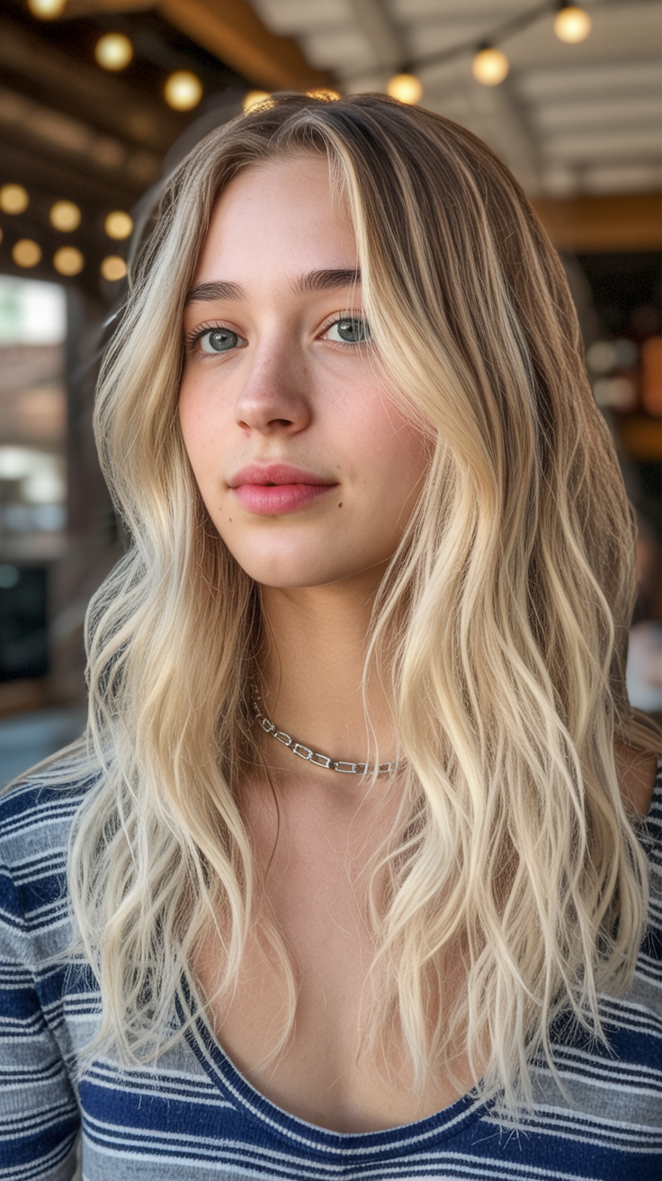 This look feels bold yet surprisingly wearable. The pale, almost platinum blonde paired with natural waves creates a striking contrast that still feels soft and approachable. It’s a confident choice that says you’re not afraid of change—even if it’s subtle.