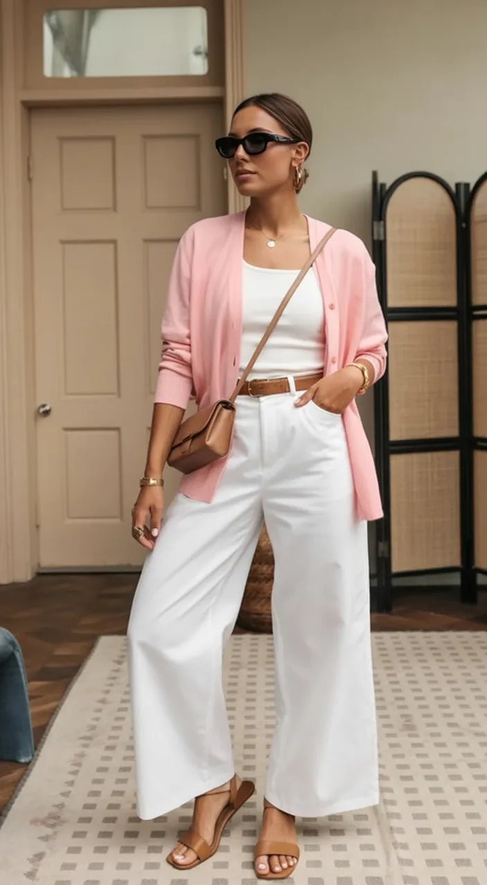 11. Blush Cardigan and White Pants Combo