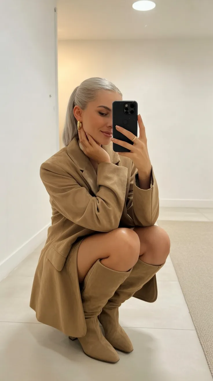 17. Neutral Coat with Knee-High Boots