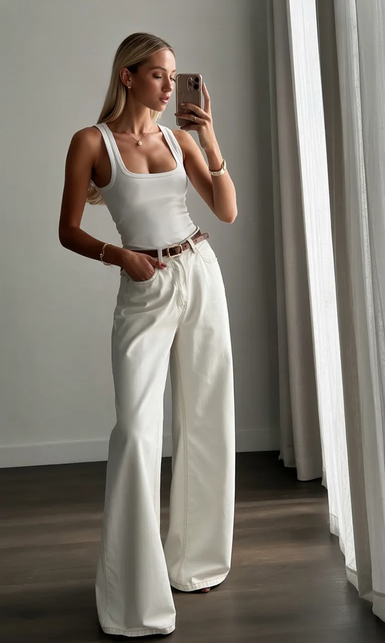 19. Clean White Tank with Relaxed White Denim