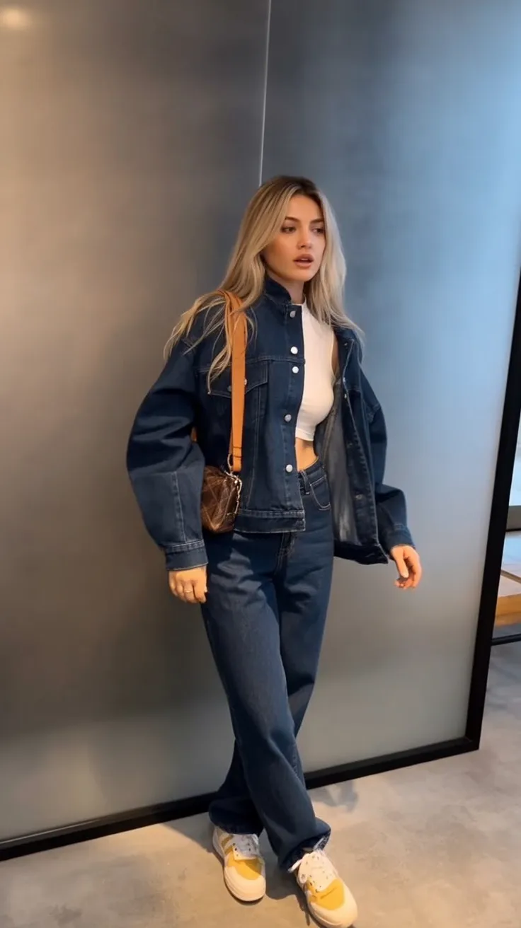 21. Double Denim with a Sporty Casual Twist