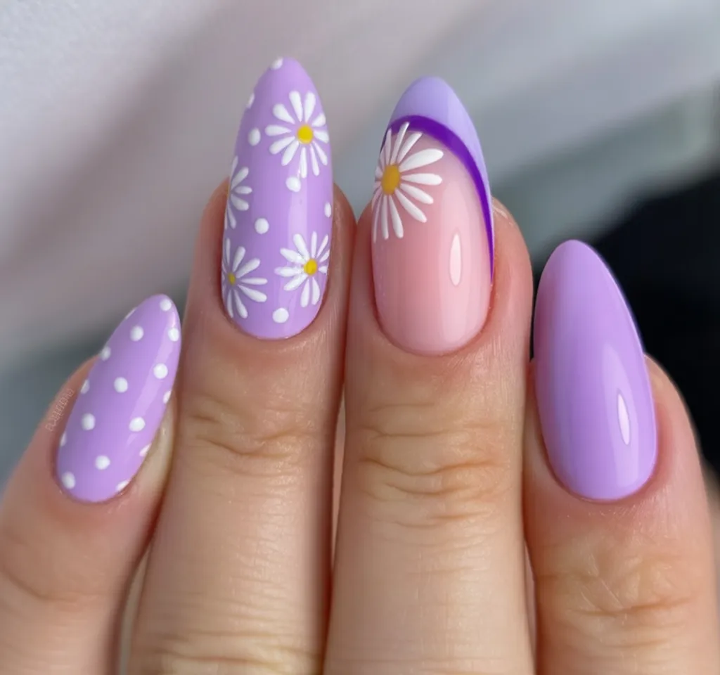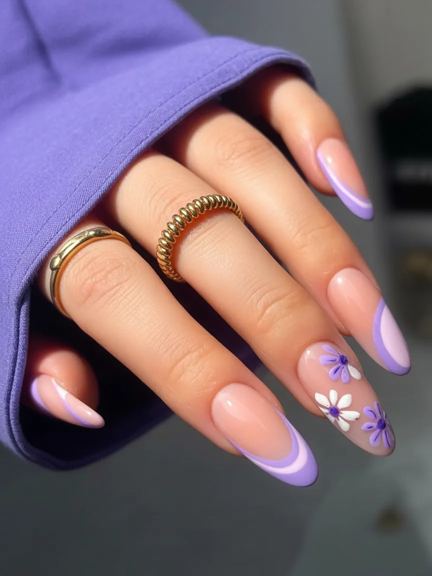 2. Playful Lavender French with Daisy Art
