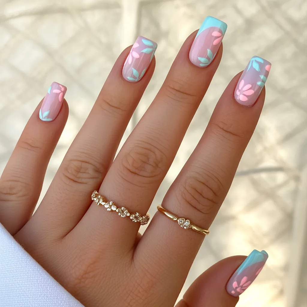 If you like clean lines and a more modern look, square nails like these are perfect. This design works best on short to medium lengths, as it keeps the look simple and easy to wear. If you are looking for fresh ideas that are low maintenance, this is a great choice. The With design florals add just the right amount of art to keep the manicure fun and practical for everyday use.